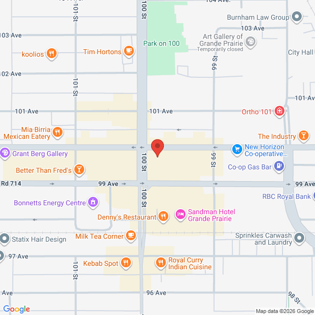 We are located at 10055 120 Ave, Unit #206, Grande Prairie, AB.